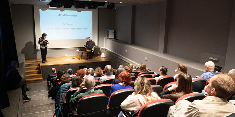 In his talk on November 17, 2025 at the Anarad Hığutyun Building, David Kazanjian reflected on how Sarkis’s exhibitions Respiro (Venice Biennale, 2015) and 7 Tage, 7 Nächte (Kunsthalle Baden-Baden, 2024) invite us to rethink the idea of reparation. Rather than understanding reparation as a return to a time before harm- a promise to restore wholeness- Kazanjian focuses on what remains when the “re-” is removed: the now largely forgotten notion of “paration,” understood as a process of readiness and departure without a fixed origin or end. Through Sarkis’s work, he proposes a way of thinking that moves away from repair as closure and instead embraces a state of perpetual becoming- a threshold, a tipping point- where parts exist without the necessity of a lost or promised whole. The talk opened space for considering justice, memory, and art not as acts of completion, but as ongoing processes.