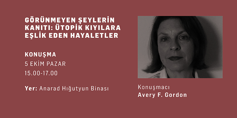 Avery F. Gordon bu konuşmasında Ghostly Matters: Haunting and the Sociological Imagination ve The Hawthorn Archive: Letters from the Utopian Margins kitaplarının merkezinde yer alan temel meseleleri ve problematikleri yeniden ele alarak tartışacak. Bunun yanı sıra 1948’de Kore’de şiddetle bastırılan bir halk ayaklanmasını tetikleyen asker isyanları üzerine yaratıcı non-fiction türünde yazmakta olduğu kitabını tanıtacak. Konuşma, birbiriyle uyuşmayan hafızalar ve görünmeyen şeylerin kanıtı ile ilgili çeşitli soruları tartışmaya açacak.